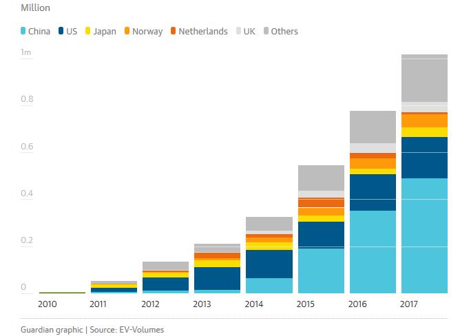 按照上述趋势,如果2018年电动汽车销量将达到170万到200万辆,到2018年年底全球的保有量将有望超过500万。